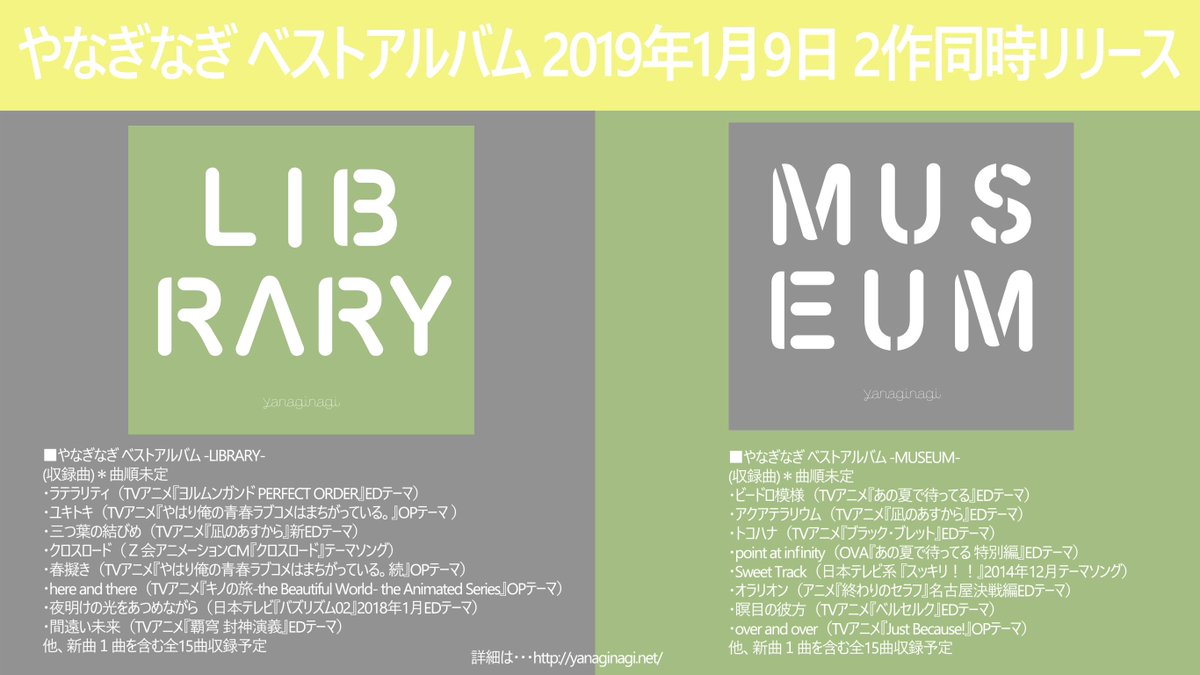 やなぎなぎ Info V Twitter 19年1月9日 やなぎなぎ ベストアルバム 2枚同時発売決定 やなぎなぎ ベストアルバム Library やなぎなぎ ベストアルバム Museum T Co Mimtc6jbqz